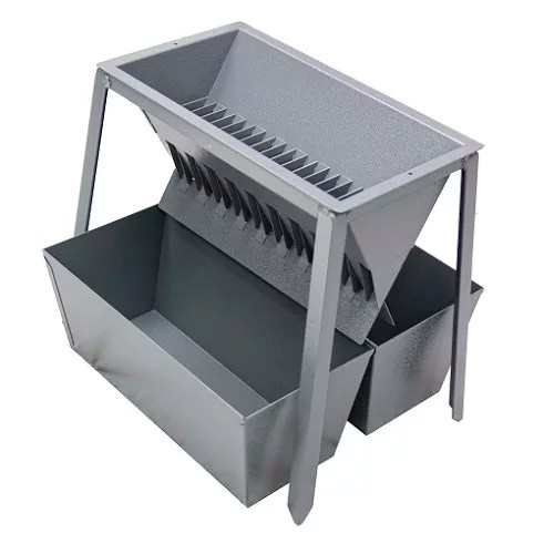 The sample then produces two equally divided subsamples. Riffle splitters are commonly used in mining.